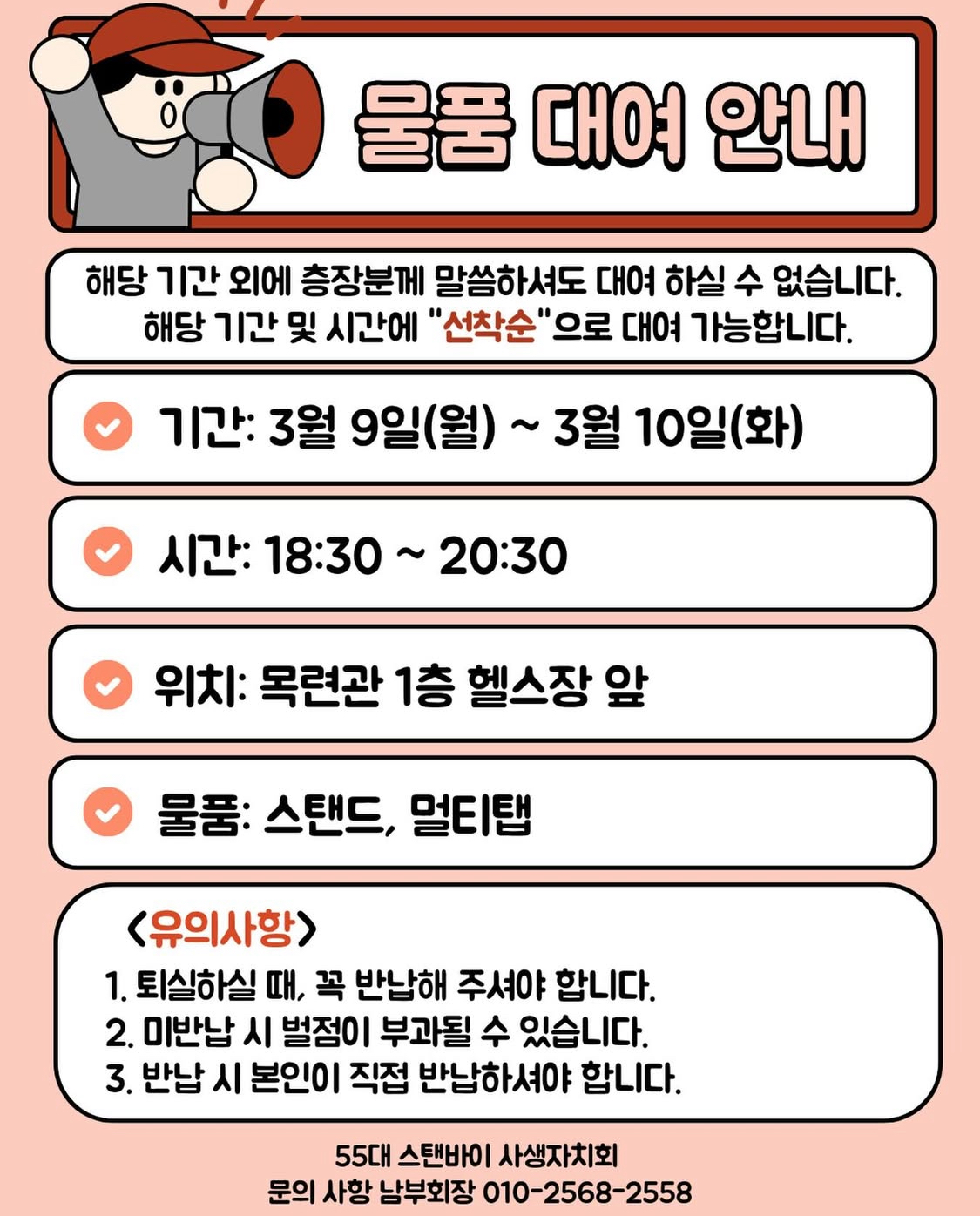 | 55대 스탠바이 사생자치회 “물품 대여 안내“ | |||||